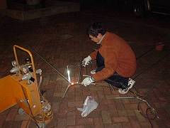 後は、並べておいて溶接開始。真っ暗の中行ったので瞳孔が開いていたため、接合部をきちんと見ることができずに溶け混みが足りなかったので、次の日の昼間に修正した。