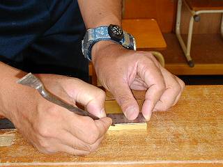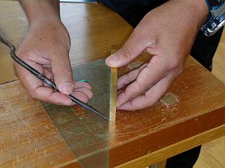 今回は面取りをするだけにした。定規の厚みが2mmだったので,これに合わせて4面+上面をけがいた。