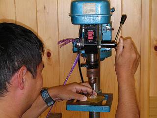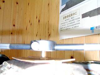 実は最初,手で押さえてあけたのでドリルが貫通する瞬間に材が暴れて刃と一緒にまわってしまった。