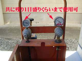 古いものなので,単位もkg/cm^2となっているが,残り1目盛り分くらいはOKだとのこと。