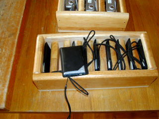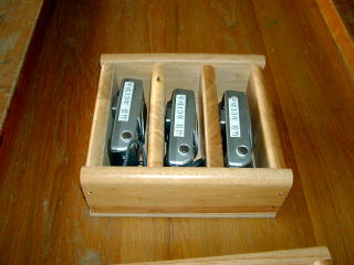 デジタルカメラが増えてきたが,小さいものだけに,ついバラバラしてしまう。 それぞれの大きさに合わせて,枠をつくって棚に入れることにした。