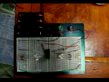 今回は、サンプルプログラムを使ってみたが、ちょうどこれから製作しようと考えているLED8本を制御するものだった。ブレッドボードを使って組み立てて、PICを差し込む。電源は単三電池4本で6V。