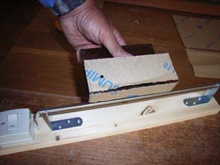 アクリル曲げ機で曲げているところ、実は1回目は曲げてから穴を開けたところ、アクリル板が割れてしまった。(固定時に浮いてしまったため)