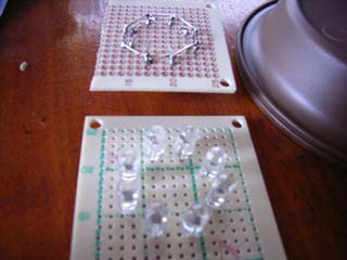 LEDの取り付け部、丸く配置したけれど、この基盤を使うのなら横一列とか縦とか好きなようにデザインできるかな。