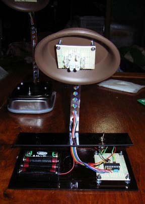台座をアクリル板で製作し、電池やPICをむき出しにした状態ですぐ取り替えられるようにした。