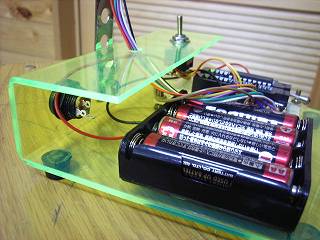 電池と基盤の隙間も最小限にして、横方向にはコンパクトに仕上げてみた。これくらいの方が見た目のバランスはよいし、材料も節約できる。(アクリル板は意外と高価)