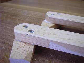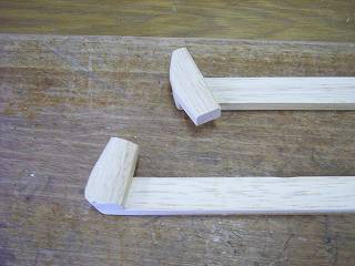 棒の部分は一昨年度に1年生が作ったサイドテーブルの天板を切ったときに余った材料を帯のこで縦挽きし、ベルトサンダーをかけたもの。