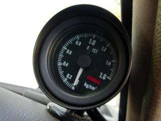 ターボで加給してやると、吸気側の圧力が加圧されて、その様子をメータで読み取ることができる。