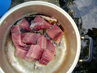 本来なら内蔵がおいしいところだろうけれど、あまりにも大きく、背骨も太くてとても輪切りにはできないので、3枚におろしてみた。