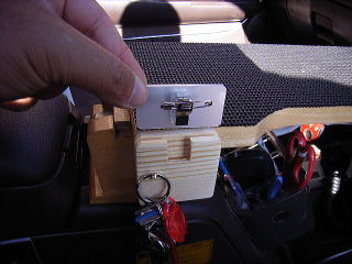 その部品をテーブルの側面へボンドで貼り付けた。カギは振動でちゃりちゃり鳴るかと思ったがそうでもなかった。