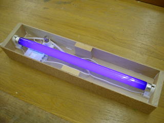 以前、保健の先生に頼まれて紫外線の蛍光灯を作ったけれど、ブラックライトを使うのがよいということになりそのままになっていた。