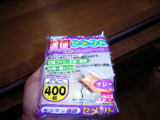 そこで、もう一度コンクリートを買ってきた。ダイソーで100円。速乾タイプで10分以内に作業せよと書いてある。近くで夜8時までやってくれているのはありがたい。