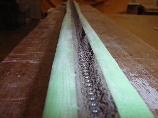 いったん平らに埋めた後、細い棒で溝を作っていく。