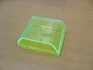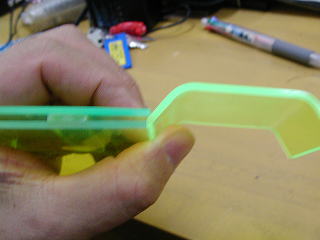 蛍光色のアクリル板を使ったので、接合には透明な梱包用テープを使用した。