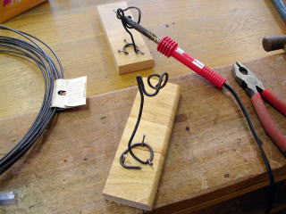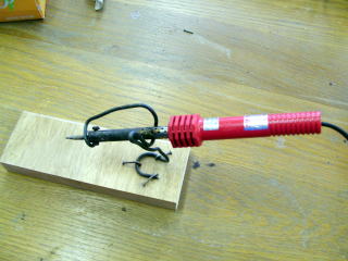 以前、一般的に売られているハンダごて台のように、バネ状に針金を曲げてみたが今ひとつ上手くなかったので、今回はもう少し接触部分を小さくして保持するようにしてみた。