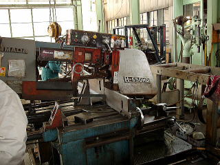 amadaの切断機、オイルで冷やしながらのこぎりで切断。火花も全く出ない。