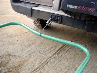 ローラーの引っ張るところは湾曲していたので、鉄パイプを抱かせて真ん中に針金で輪を作ったが・・・