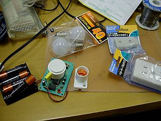 ここまでやったけれど、人体感知センサーキットについているのは9Vのリレーなので、それをいかさなければもったいないと思い、100Vのランプを使うことにして部品を買ってきた。