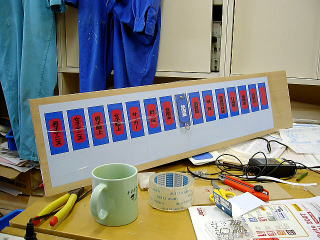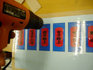 ちなみに、この写真では、文字の上に空気を入れてしまい、もう一度張り直した。(当然紙も印刷し直し(^^ゞ )