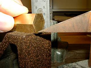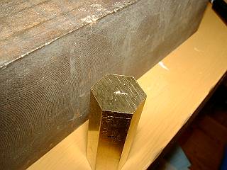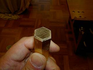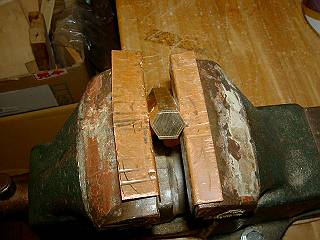 ちょっと不安定だが、六角柱の角をはさんでバイスでしめる。