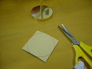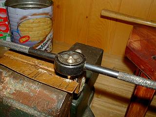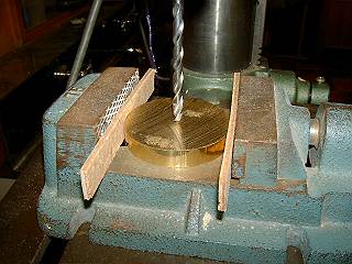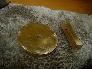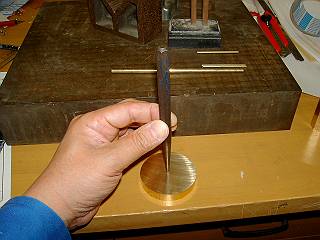 台座には中心に穴あけをする。トースカンで心だし。