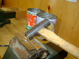 キーホルダーを引っかける棒は3本まとめて、ハンマーでたたいて曲げた。