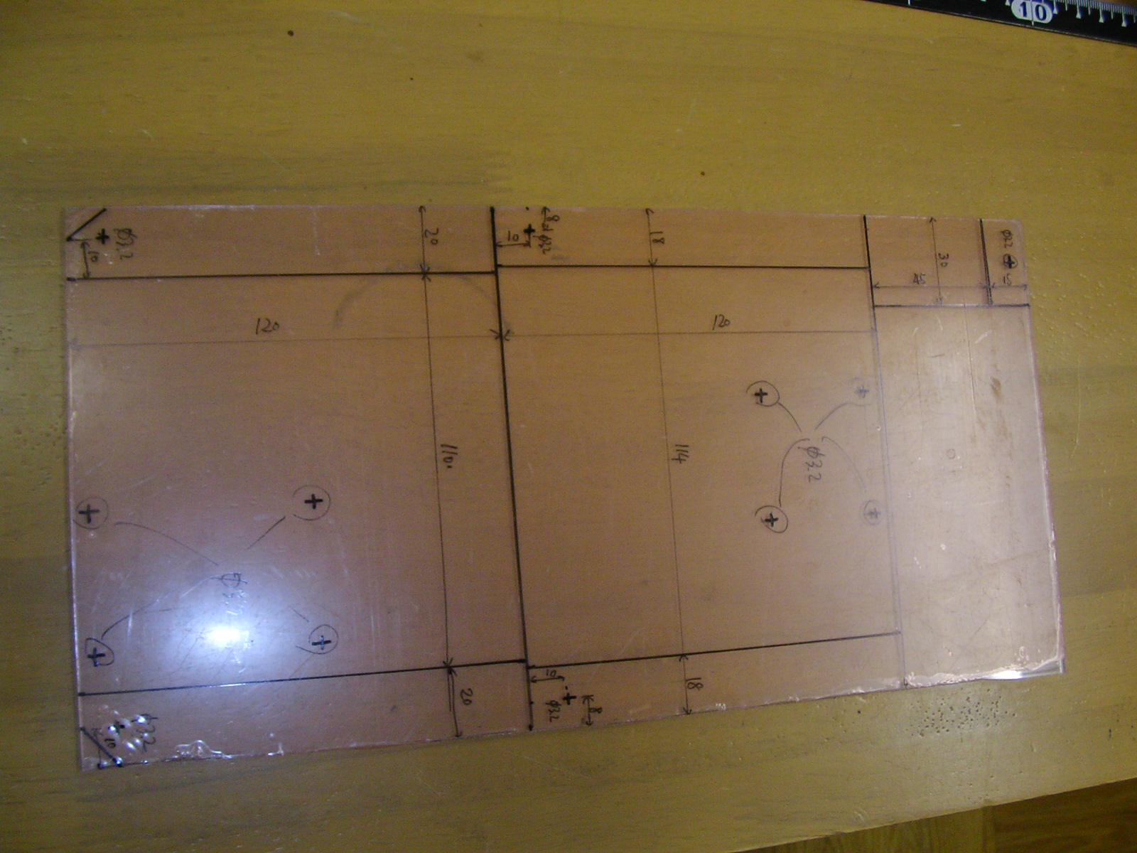 150×300のペット材にこのようにけがき(クリックすると大きくなります)