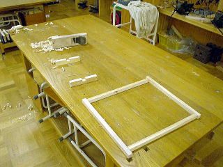 3年前の1年生の教材にした天板のあまり材を細く切って枠を作った。