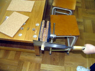 昨年度の1年生が使った材料のあまりと、3年前のテーブルの天板を切った端材で作ったもの。