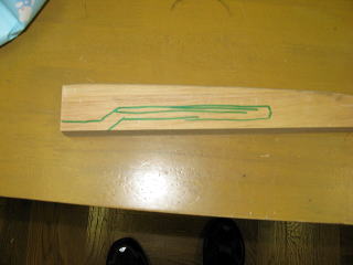 そこから小刀で削っていく。左側は逆目になっているので良くない。右側が正しい。