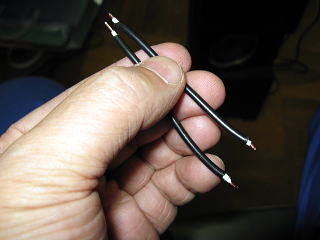 上の写真が元の状態。この黄色いリード線を右のようなシールドの芯線に差し替えてみた。