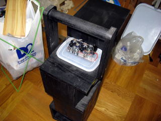 以前作った持ち運びようアンプだけれど、やはりまだ発信音が気になる。実はまだ1本ソースから抵抗への接続が普通のリード線だったので、それもシールド線に変えてみた。