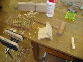 材木屋さんに見せるので,何かサンプルをということで手近にあったパイン材を使ってこんなスタンドをつくってみた。のこぎり引き・かんながけ,釘打ち,組み立て等の基礎的な技能を身につけるための練習材という位置づけ。