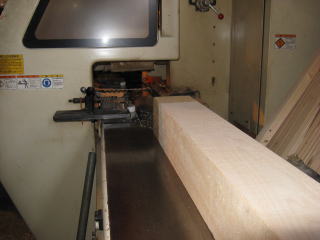 今回初めて知った機械。「モルダー」。これは6軸モルダー,一度に6種の刃で一度材を通すといっぺんに加工されて出てくる。4面プレーナの刃を平らだけでなく各種彫り込み等のできる刃に替えた物といえる。