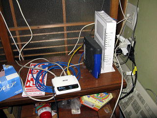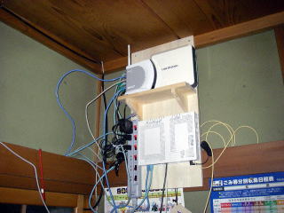 壁に取り付けたので場所はとらないけれど,イーサネットケーブルがたくさん延びているのでごちゃごちゃした雰囲気は否めない。また,夜でもアクセスランプがチカチカしているので,暗闇で結構目立つ。