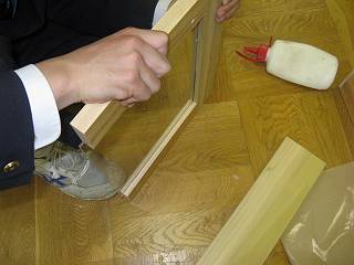 ふたの部分の製作。アクリル板(3mm厚)を購入してきて、周りの板に溝を切ってはめ込んだ。 先に枠を決めてから、その大きさに合わせてアクリル板を切ったので、ばっちり決まった。 ちなみに1つ分のアクリル板は1200円程度になる。 それを先日作った枠に接着し、箱にした。 今度はこれを丸鋸で切ってふたと本体に分離する予定。