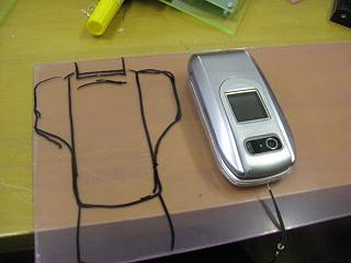 自分の携帯電話(advanced W-ZERO3[es])のホルダーを作ったところ、普通の電話でもいいねと共鳴していただいたので、2つ折り携帯のホルダーを作ってみた。