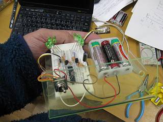 再来週には隣の郡で技家の先生たちが集まるときに、デモを見せると言うことなので、ブレッドボードで作ればいいかと試してみた。