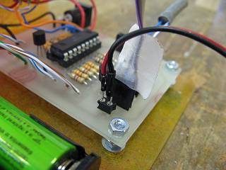 PWMポートへ差し込む所(左側)とCDS受光部(右側)の拡大写真。