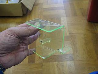 別の加工。先日イマザワさんが作ったココナッツサンプル。基盤だけだったのでアクリル板で筐体を作ってみた。