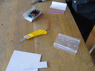 今日は、イマザワさん(業者)の社長さんと、営業部長さんも来て一緒に作ったのだけれど、社長さんはPET材を曲げて開閉式の懐中電灯タイプを製作。