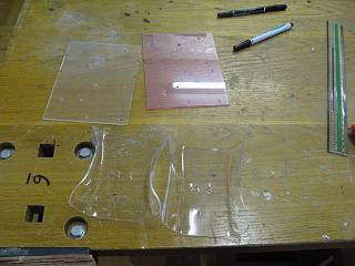 まず考えたのは、PET材の穴あけ。位置決めをしたりボール版で穴を開けたりと、ここで学ぶスキルも多いのだけれど、時間がないんじゃここを削ろうかと言うことになった。
