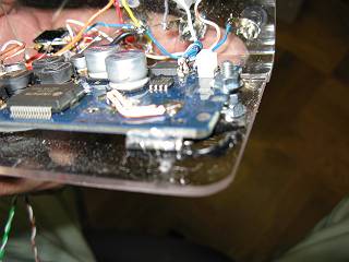 ついでに、外付けのカップリングコンデンサもホットボンドで足となるように固定した。