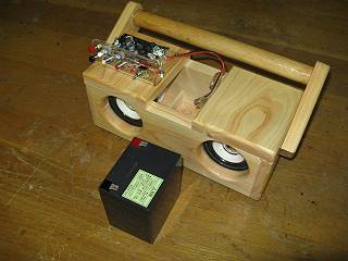 上部からみたところと、バッテリーを外したところ。バッテリー自体が左右のスピーカーボックスの仕切りとなっている。