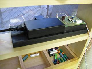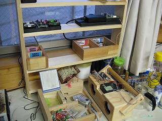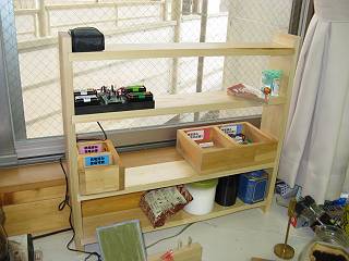 そして鉛蓄電池の充電キット。先日理科の先生に作ったものと同じだが、今回は板に取り付けて棚の上に置いた。