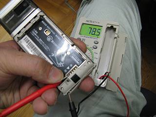 バッテリー充電器から取り出して、接続。しかし充電は開始されなかった。