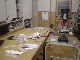 その後、引っかけるための穴を開ける。枚数があるのでガイドを固定してボール盤であけた。
