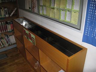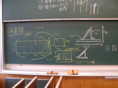 図書館の先生から、入り口に置いてある棚の上にのせる新着本のスタンド制作を依頼された。