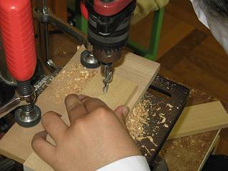 一つ長さを合わせて決めた後、毛引きで量産。 穴は2段切りによって開けた。