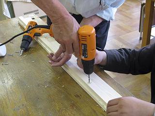 続いて、ボンドとコーススレッドで組み立て。しっかりした穴を開けないと割れが入った。